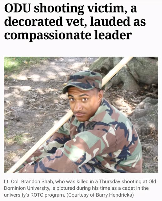 I am deeply saddened by the tragic loss of Lieutenant Colonel Brandon Shah, who was killed in the recent shooting at Old Dominion University.